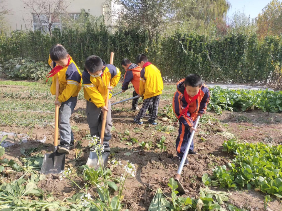 学校成立劳动教育领导小组,把种植园合理划片分区,分配到班级。劳动实践基地面积6000平米,让学生参与各种种植、管理等农事活动,给学生创造了多样化的情境。学生挥洒汗水、发展智慧,在参加基地内各种农事劳动中,学习了有关植物的科学知识、了解农具的用法、掌握农作物的管理常识,在劳动中发现和解决问题,不断提升自己的劳动素养,培养自己的劳动习惯。