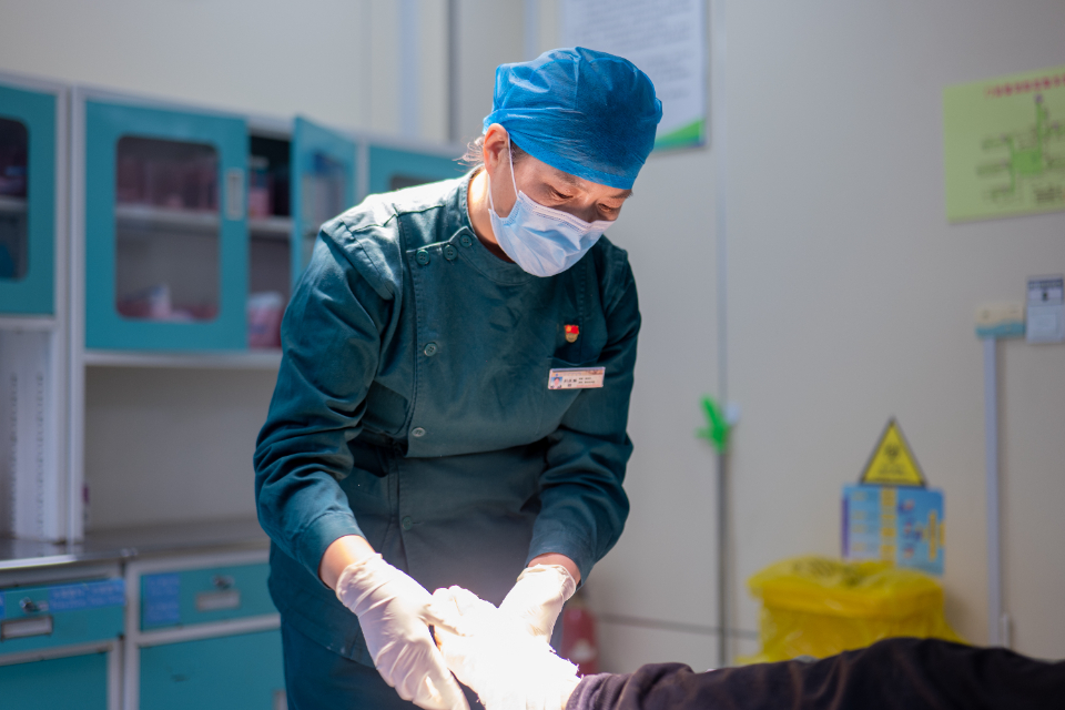 2022年下半年,疫情形势严峻,急诊科患者增多,迎来了前所未有的挑战,每天24小时不间断的紧急抢救工作,而此时的她肘关节骨折,戴着石膏固定支具坚持上班,疼痛难忍时只能靠止疼药止疼。她深知在这关键时刻,自己是整个护理团队的支柱,决不能后退。