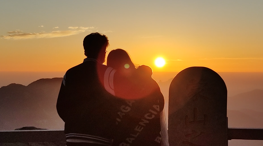 登上龟蒙顶,在黑夜里静静等待黎明的降临,是一件很奇妙的事情。看天空由暗变亮,太阳在云端尽头冉冉升起,云海轮廓逐渐清晰,偶有调皮的云雾漫过山头,在游客脚下翻腾,风在身边走,云从足下生,让人的征服感和自豪感在此刻得到极大的满足。