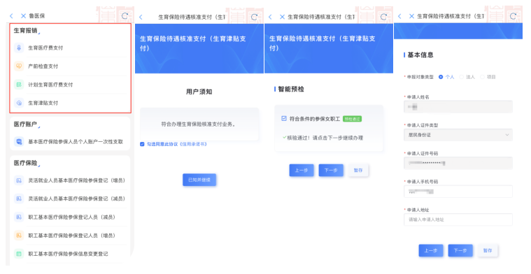 山东省医疗保障局依托“爱山东”政务服务平台上线“鲁医保”服务,符合条件的生育职工可以通过服务中“生育报销”板块报销生育医疗费、产前检查费、计划生育医疗费,申领生育津贴。