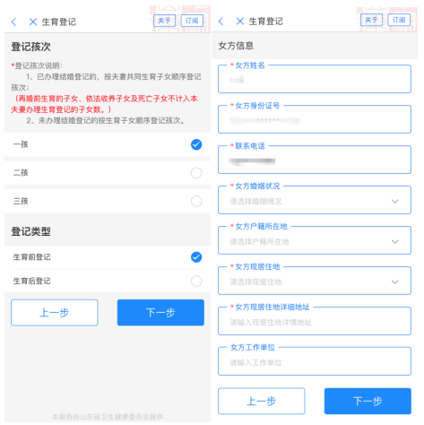 温馨提示:如果为生育后登记,须为近1年内出生的子女方可登记;生育登记完成后,可通过服务页面下方的“登记记录查询打印”查看生育登记证。