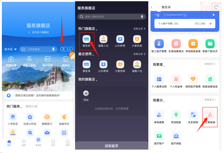 1、进入“爱山东”APP、支付宝、微信小程序,首页下滑进入“服务旗舰店”,点击进入“鲁医保”;