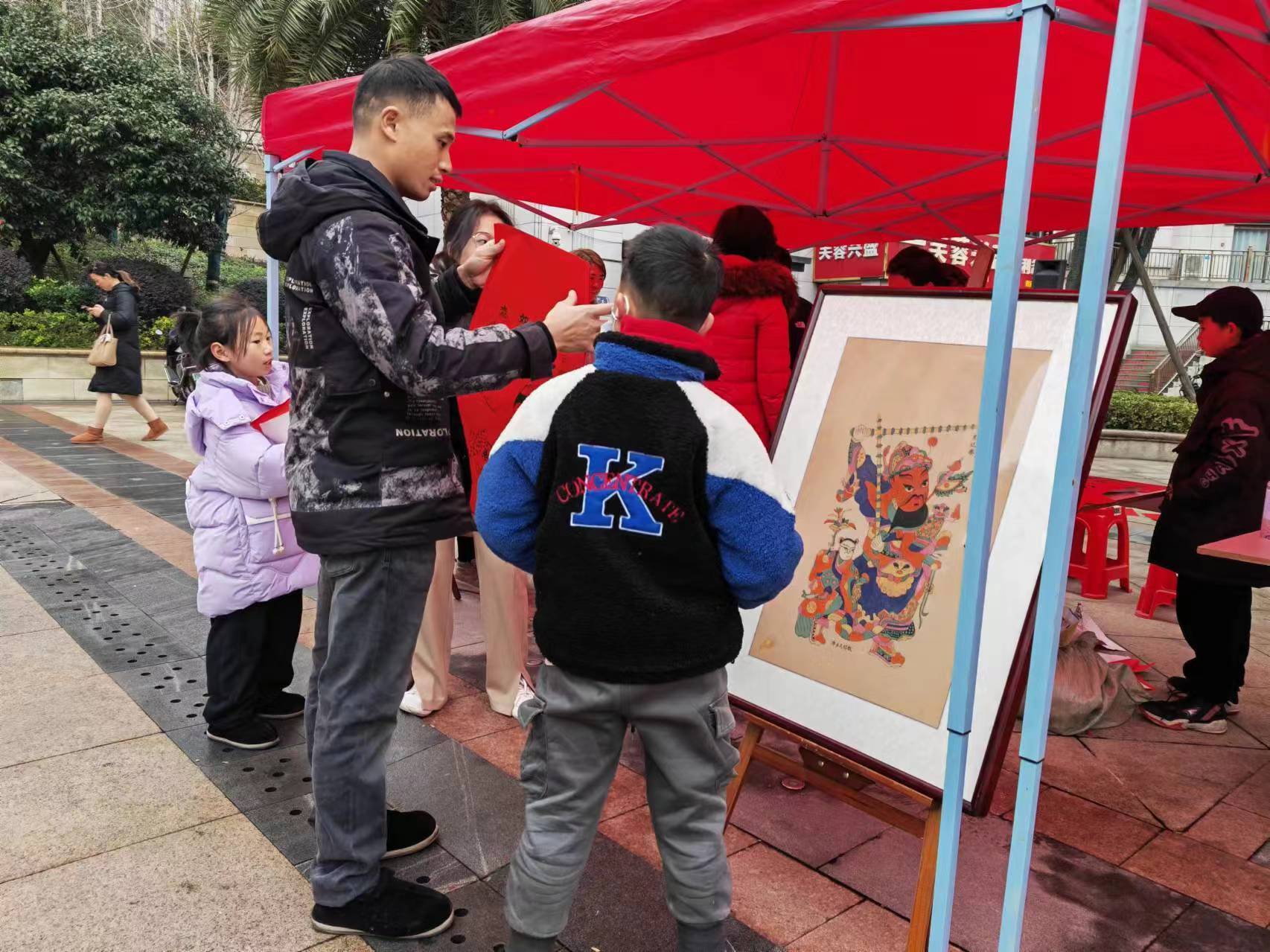 隆回县非遗中心在活动中向市民展示滩头年画。