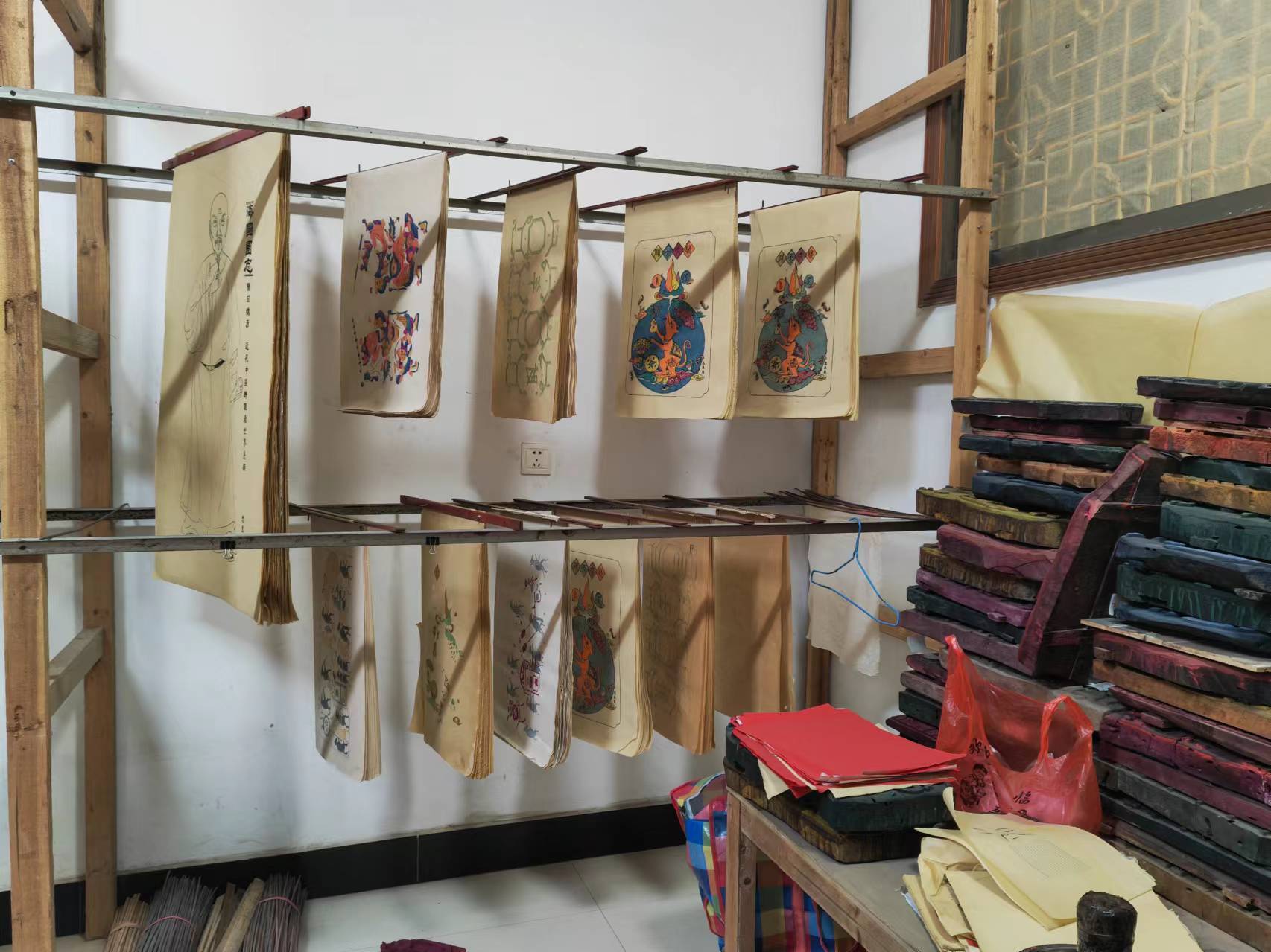 那时正是滩头年画最萧条的时候,整个镇上一家作坊都没有。有一家作坊,他却在卖汽酒。那个版子就堆在那里,老板说,你要你就拿走,2000块钱。我当时根本拿不出2000块钱。后来被人家买走了。滩头年画恢复后,重新刻版,现在大部分是新版新印。