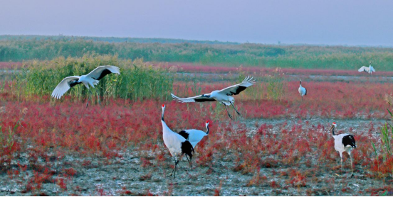 “你一定会在此生必到的旅行清单上,郑重写下‘黄河口’这个名字。”在2023年“沿着黄河遇见海”黄河口国际观鸟季开幕式现场,著名主持人欧阳夏丹如此推介东营。位于北纬37°的东营,湿地率达到40%,是全球首批国际湿地城市,更是鸟的天堂。黄河三角洲是中国最大的沿海海滩植被区 ,也是中国暖温带最年轻、最完整、最广阔的湿地生态系统,有野生动物1600多种、植物近700种、候鸟几百万只。2022年丹顶鹤数量达到300余只、占全世界的十分之一。黄河三角