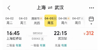 每年航班换季前后,机票价格都相对较低。在去哪儿平台上,3月底北京飞往海口、西安、三亚、哈尔滨,上海飞往长沙、南昌、济南,广州飞往上海、南京、厦门,成都飞往长沙、丽江,杭州飞往昆明、北京,昆明飞往成都、珠海,武汉飞往南宁、宁波等,机票价格均在300元以下(不含机建燃油费用),低于高铁价格。例如4月5日,上海飞武汉机票低至157元,而同天高铁票价最低为312元。