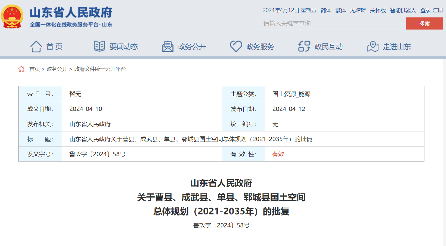 日前,山东省政府批复同意曹县国土空间总体规划(2021-2035年)》《成武县国土空间总体规划(2021-2035年)》《单县国土空间总体规划(2021-2035年)》《郓城县国土空间总体规划(2021-2035年)》(以下简称《规划》)。