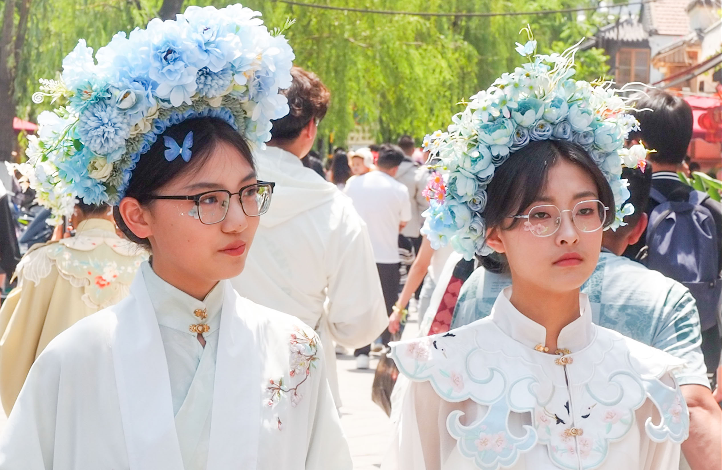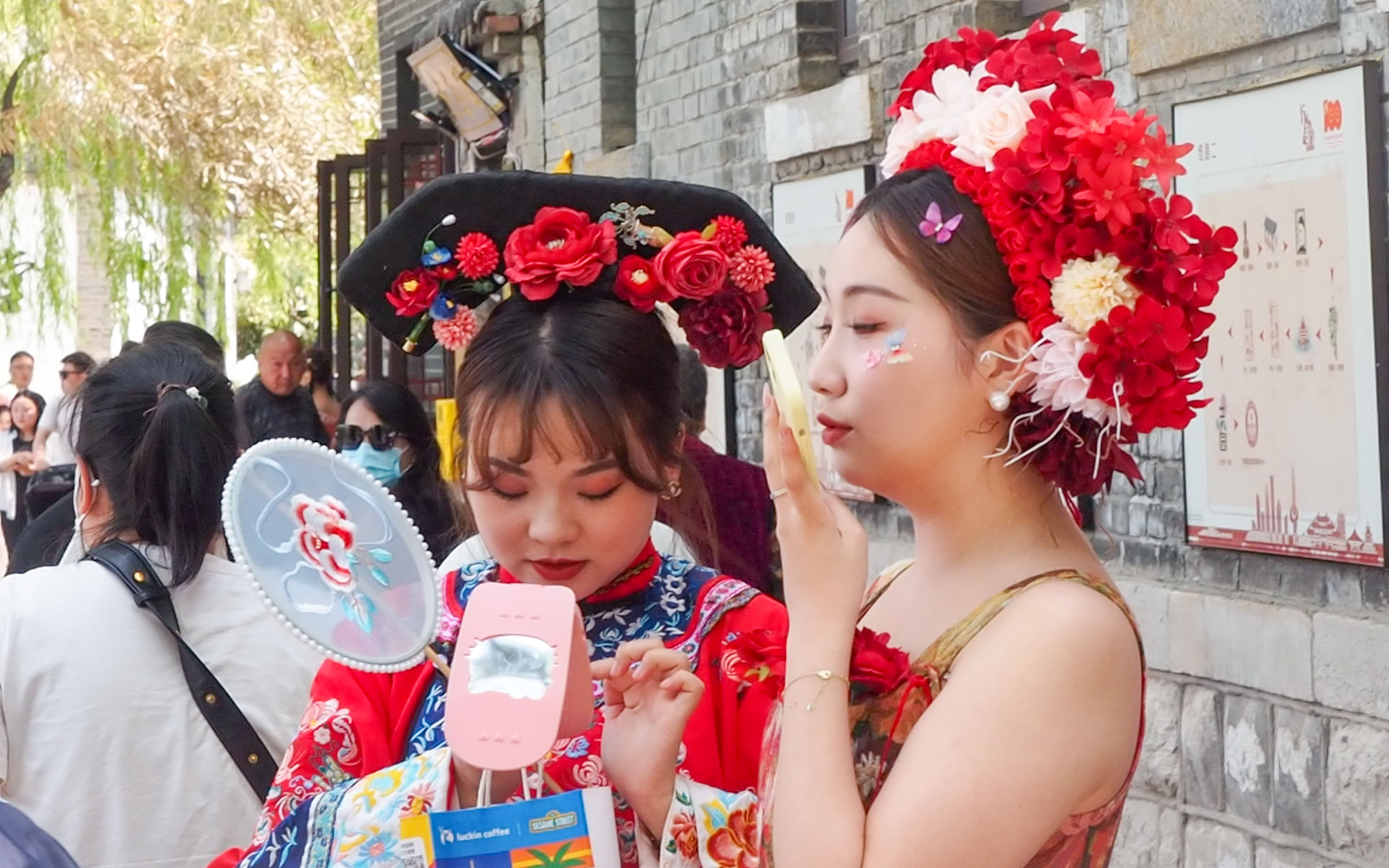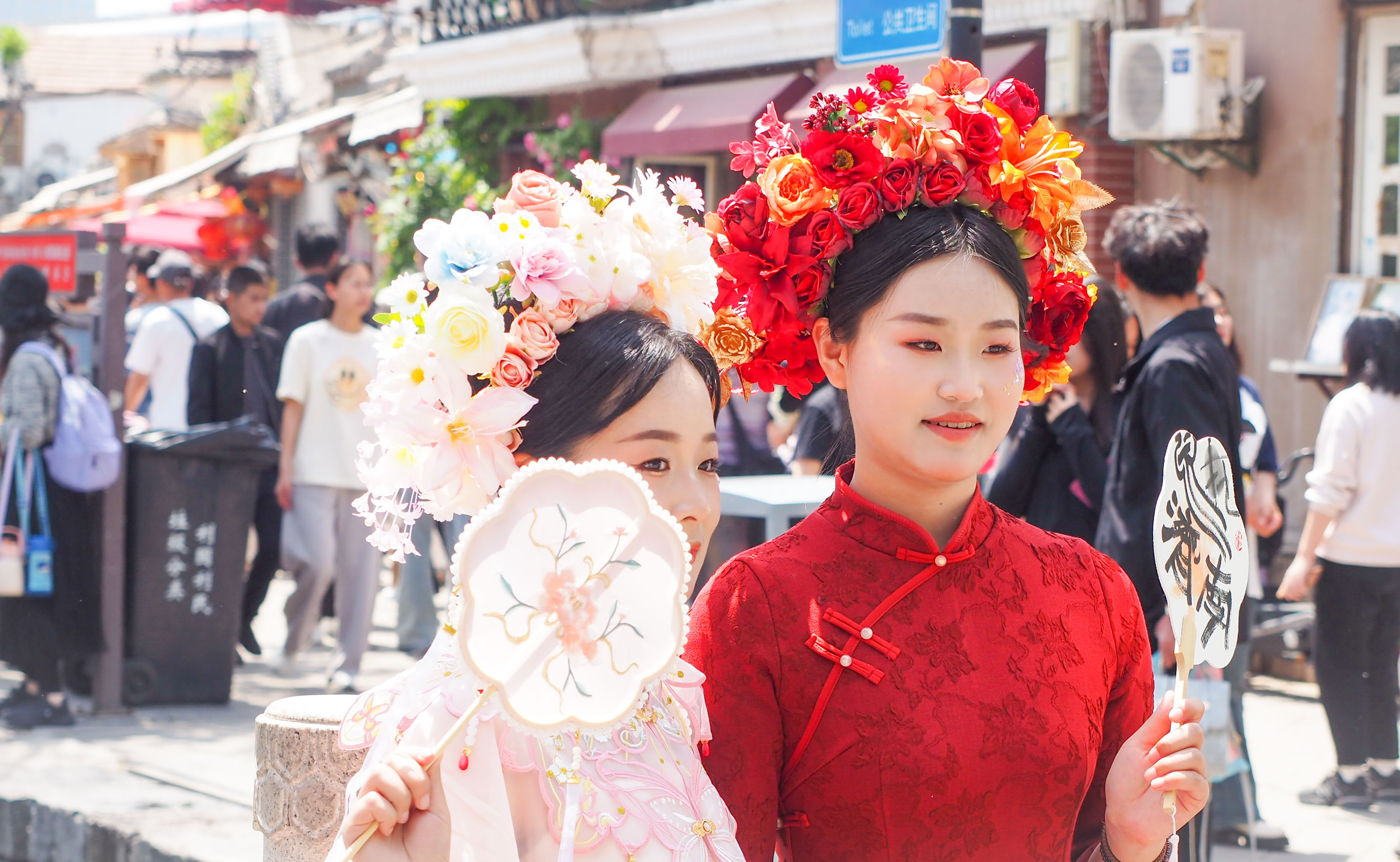 周青先 济南报道 五一假日,济南明府城老街区最亮眼的风景,除了小桥流水、百年古宅,就是满街流动的簪花潮。 簪花潮来得迅猛而靓丽,无数女孩一看到美丽的簪花和飘逸的汉服,立刻掉进这美丽的漩涡,纷纷打扮起来满街留影。济南的老街巷,顿时多了无限的青春活力。