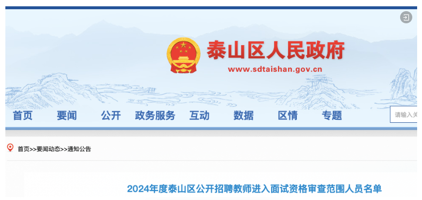 泰山区人民政府网站发布