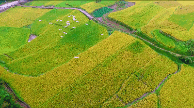 稻田水鸟翩飞
