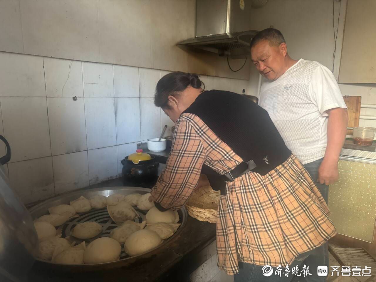 宋立慧(左一)在家里为父亲做饭。通讯员 供图
