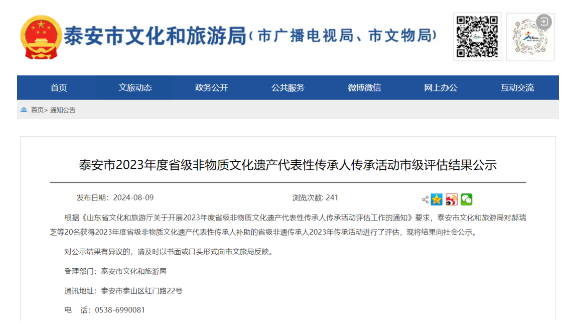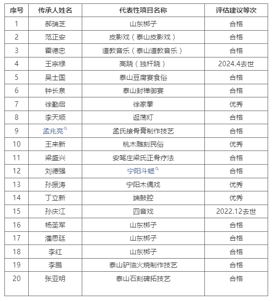 泰安2023年度省级非遗代表性传承人传承活动市级评估结果公示