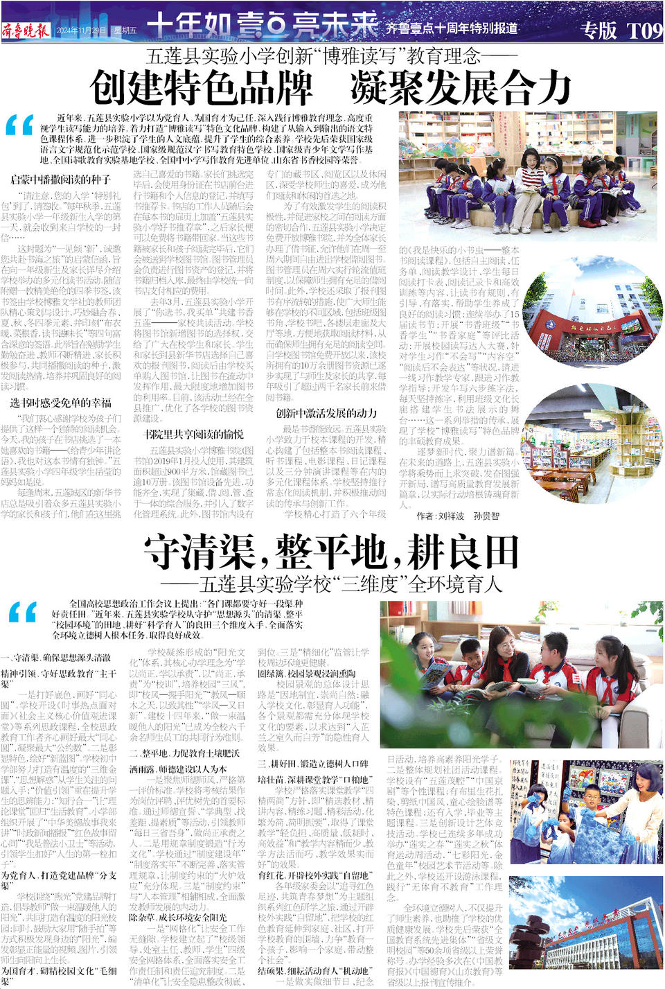 全环境立德树人,不仅提升了师生素养,也助推了学校的优质健康发展。学校先后荣获“全国教育系统先进集体”“省级文明校园”等50余项省级以上荣誉称号。办学经验多次在《中国教育报》《中国德育》《山东教育》等省级以上报刊宣传推介。
