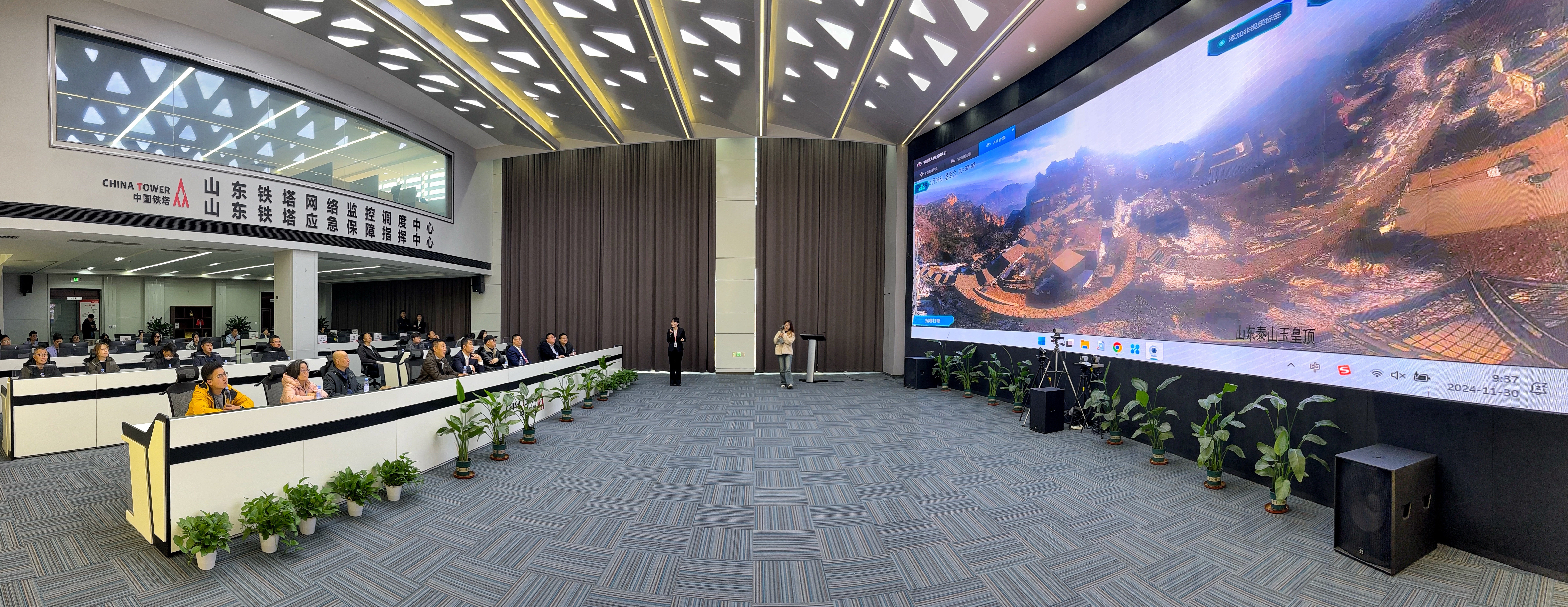 超然楼、泰山顶、黄河岸边……在山东铁塔的办公大厅,随着后台的点位切换,一个个实时画面呈现在了大屏幕上。“万物互联必靠塔”,这些画面都是来自山东铁塔分布在各处的高空视野,可用作环境监测、气象监测、景区监控等。
