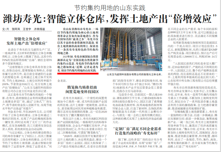 这正是寿光市节约集约用地的一个缩影。在寿光,政府鼓励企业利用闲置或存量土地建设多层厂房,通过“立体式”厂房生产,将节省的资金投入创新开发,实现节地水平和产出效益“双提升”。
