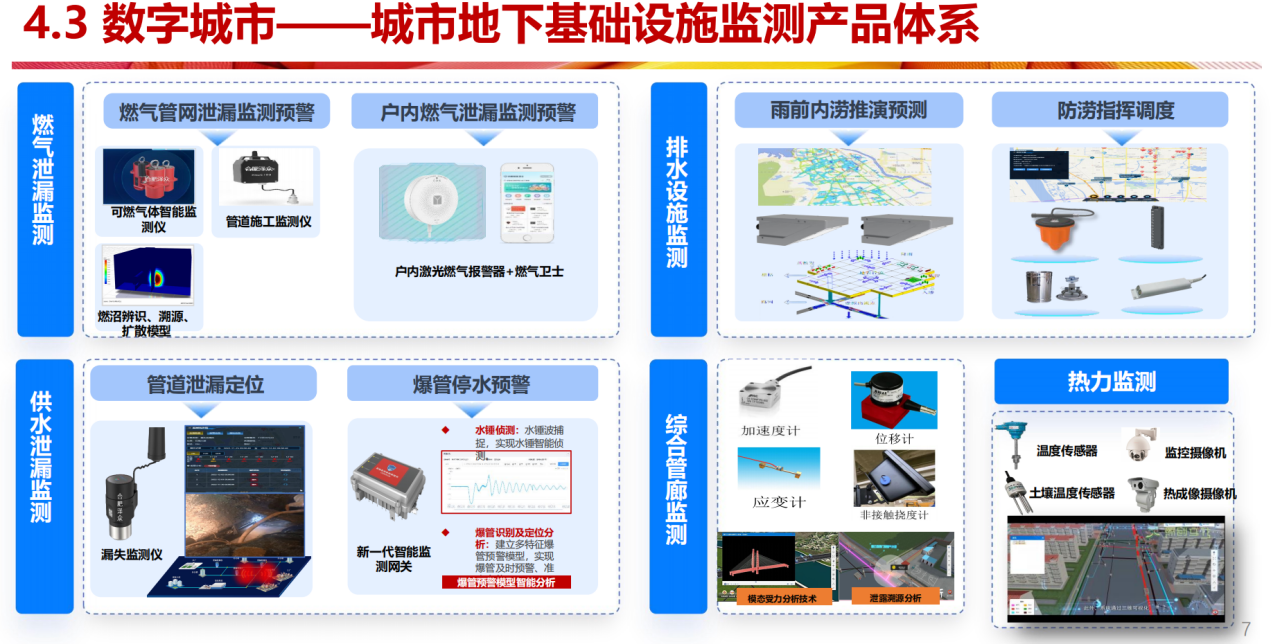 布局数字城市,中国电信已在打造城市市政安全监管平台产品体系,建设城市运管服平台、瓶装液化气平台、燃气安全监管一体化平台、城市生命线、管道燃气企业平台等,同时推出城市地上、地下两个基础设施监测产品体系。其中,地下基础设施监测产品体系通过各类设备实现燃气泄漏监测、供水泄漏监测、排水设施监测、综合管廊监测。目前该公司正在推进山东数字住建基础平台建设。