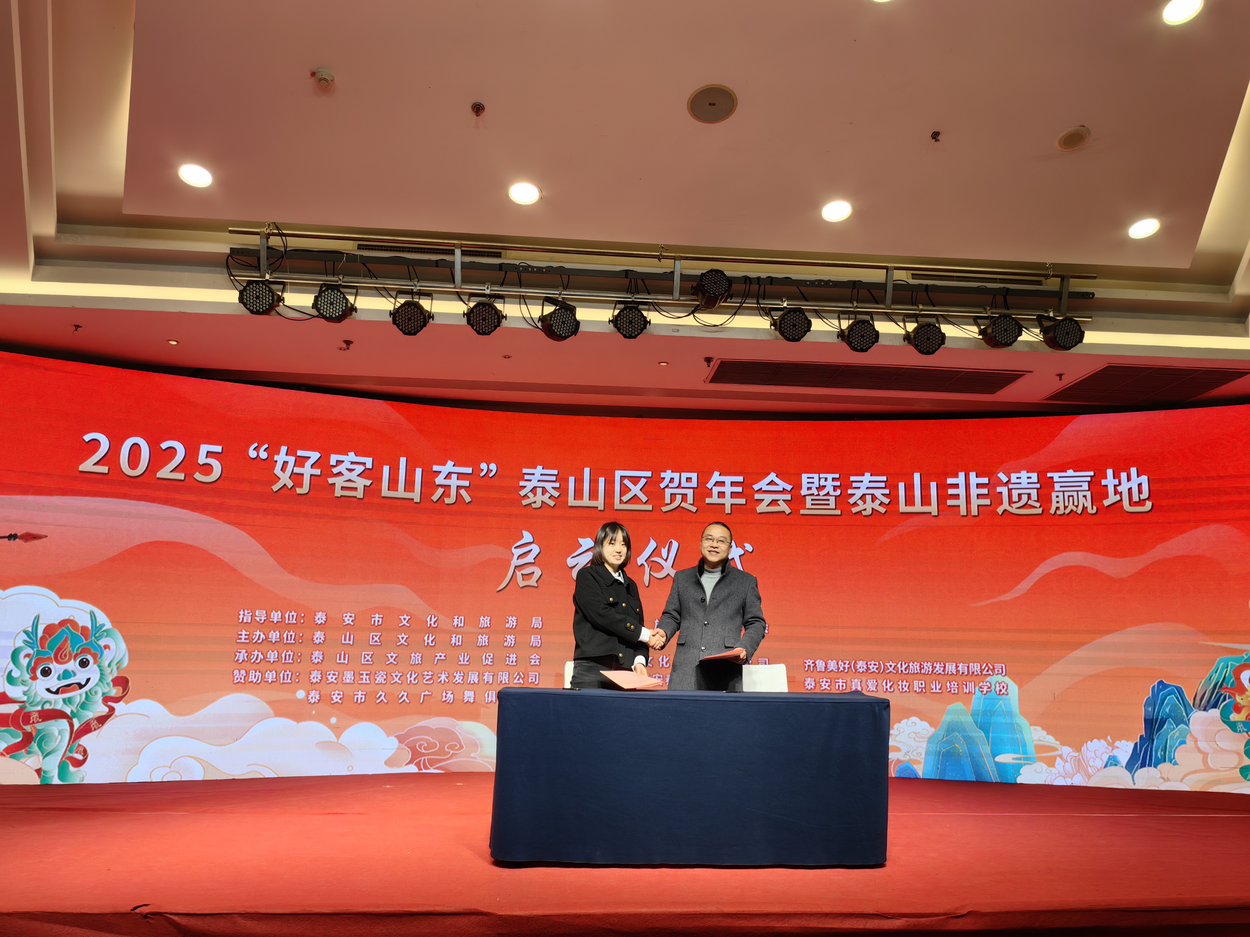 1月1日上午,2025“好客山东”泰山区贺年会暨泰山非遗赢地启动仪式在泰安宝龙艺珺酒店举行。泰山区将冬季旅游与年节文化有机结合,策划推出“跨年狂欢、暖心优惠、欢乐新春、地道民俗”四大主题27项活动,推出游乐园、泡温泉、玩冰雪、探漂流、逛商圈、赏民俗、赶大集等丰富多彩的冬游体验,邀请市民游客共赴一场冬季文旅盛宴。