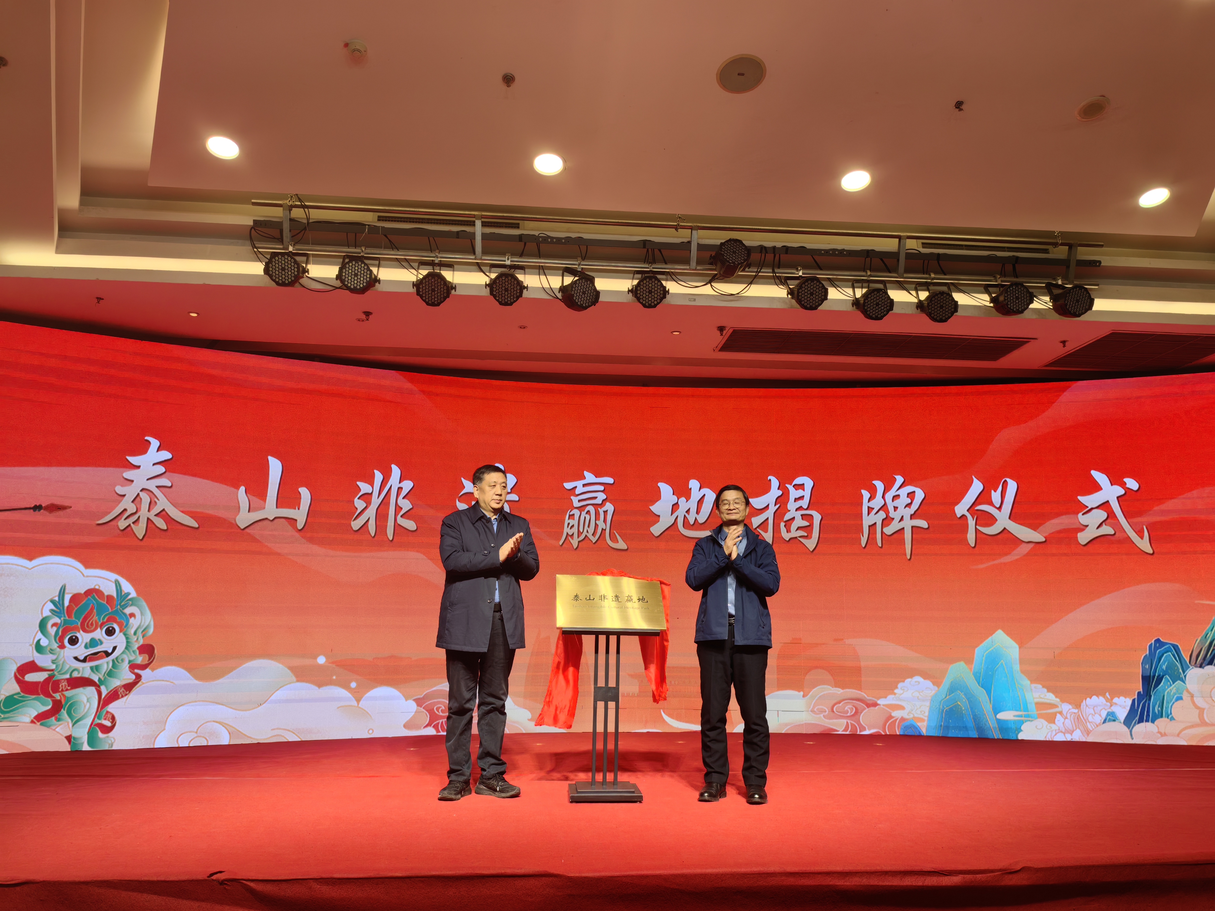 启动仪式在舞蹈《中国的歌儿最美》优美旋律中拉开帷幕。非遗项目泰山剪纸表演《茶妤》、泰山香艺茶艺表演《茶说香悦》以及八音合唱团《听说你要来》等节目穿插其中,热闹非凡。活动现场,泰安市文化和旅游局党组成员、二级调研员刘水与泰山区泰山文化传承与高质量发展推进委员会党委书记毕华年共同为泰山非遗赢地揭牌。泰山非遗赢地位于泰安宝龙艺珺酒店二楼,由泰山区文旅产业促进会倾力打造,集中展示和销售泰山传统非遗项目、文创产品、土特产,集观赏、体验、游玩、购物于一体,全力打造泰山区文化旅游新品牌。