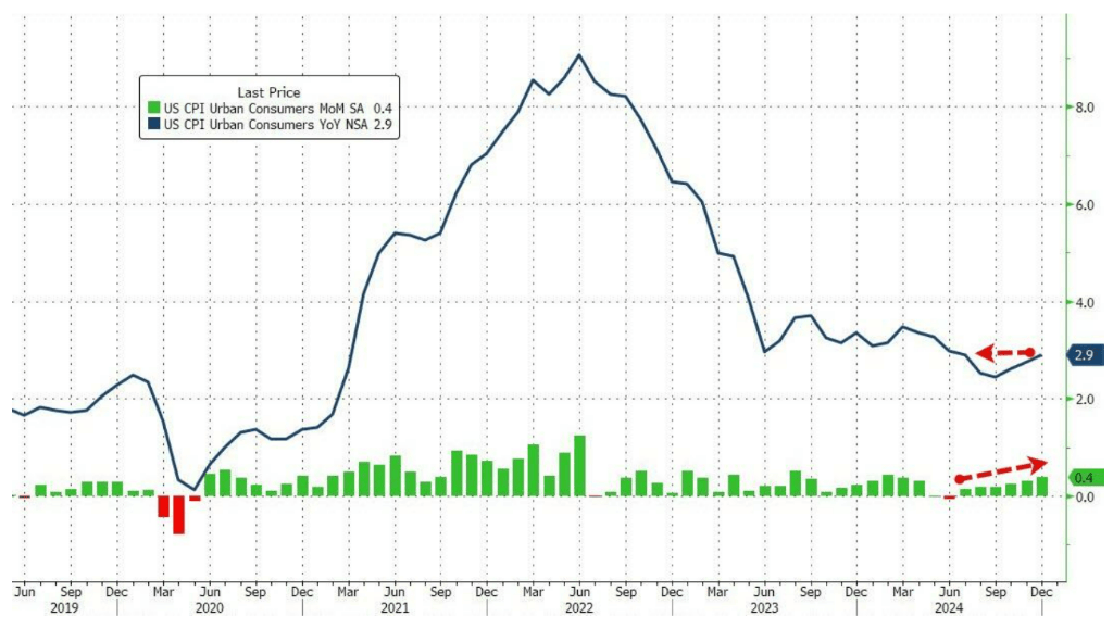 美国12月CPI同比增幅创2024年7月以来新高 图片来源:彭博社