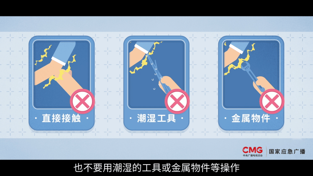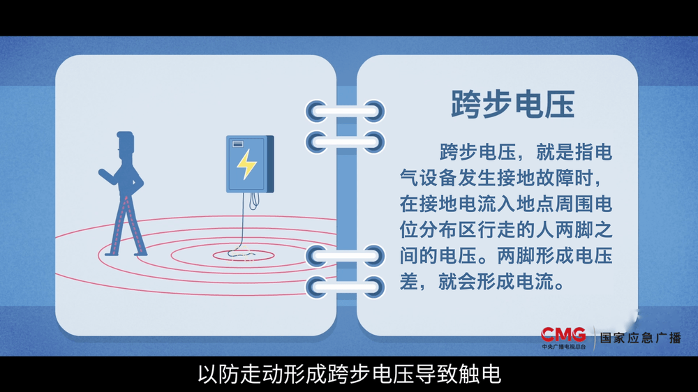 因此,遇到损坏的电线杆、电缆等,不要慌、不迈步,以防走动形成跨步电压导致触电。应保持冷静,双脚并拢跳离危险区。