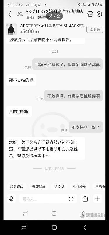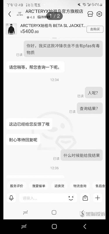 市民买始祖鸟冲锋衣后要求退货遭拒 2月18日,家住甘井子区辛寨子街道的市民肖先生在网购平台的始祖鸟官方旗舰店上,花费5394.61元购买了一件冲锋衣。收到货后,肖先生对这件高价户外装备颇为满意,已穿着两三次。 近日,国内多家媒体报道,部分始祖鸟产品被指含有PFAS,或存在健康风险。看到这些报道后,肖先生立即陷入焦虑:“不知道我买的这件衣服是否含有这种物质,如果不弄清此事,这件衣服我都不敢穿了,因为我害怕会影响自己的身体健康。” 为了弄清自己买的衣服是否含有PFAS,肖先生联系了旗舰店客服,“客服表示不清楚我这件衣服面料是否含有这种物质,现在始祖鸟部分产品里面含有PFAS的事儿闹得沸沸扬扬,客服这样回应太不应该了。” 担心自己买的这件衣服里含有PFAS,于是肖先生向客服提出退货的请求,但遭到了拒绝。“客服的意思是我这件衣服已经穿过了,因此无法退货。”肖先生认为,商家应该给出明确的说法,尽到诚信透明的生产和销售的责任。“我这款衣服面料里是否含有PFAS?如果真的有,是否真如媒体报道所说,会危害身体健康?现在商家客服一问三不知,导致这件衣服我根本不敢穿了。”