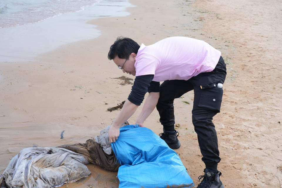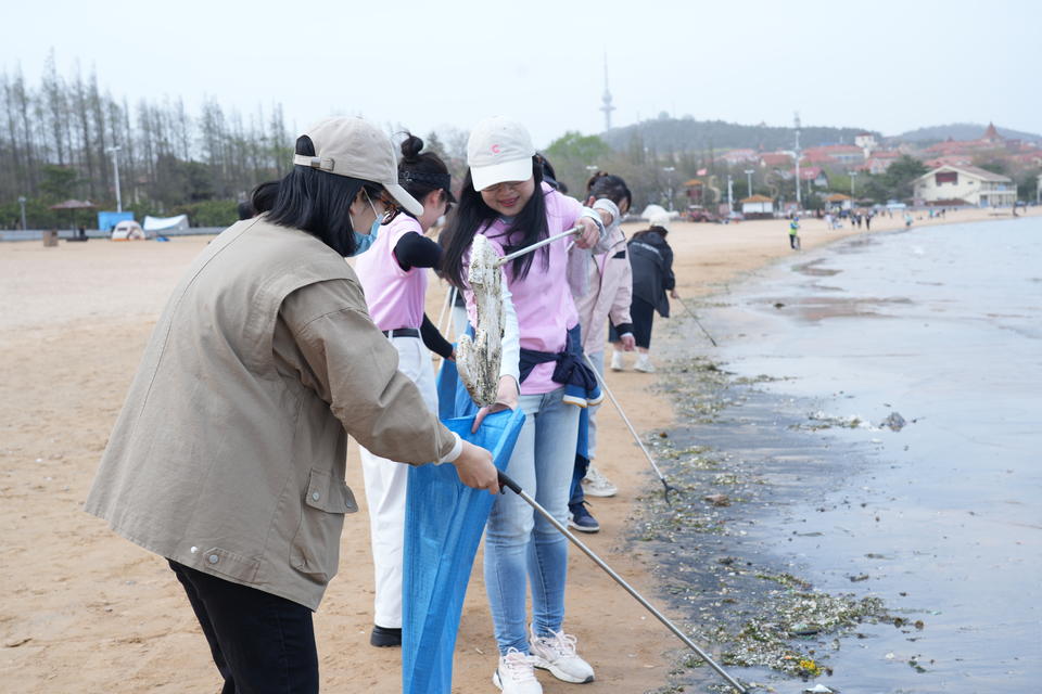 往期活动中,青岛诺德志愿者们弯腰捡垃圾的身影与夕阳下的洁净沙滩形成鲜明对比。