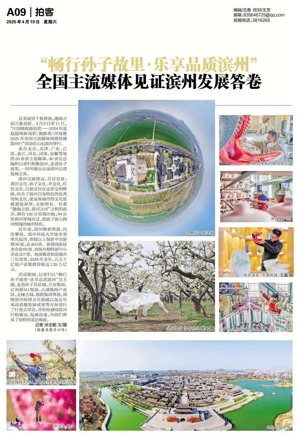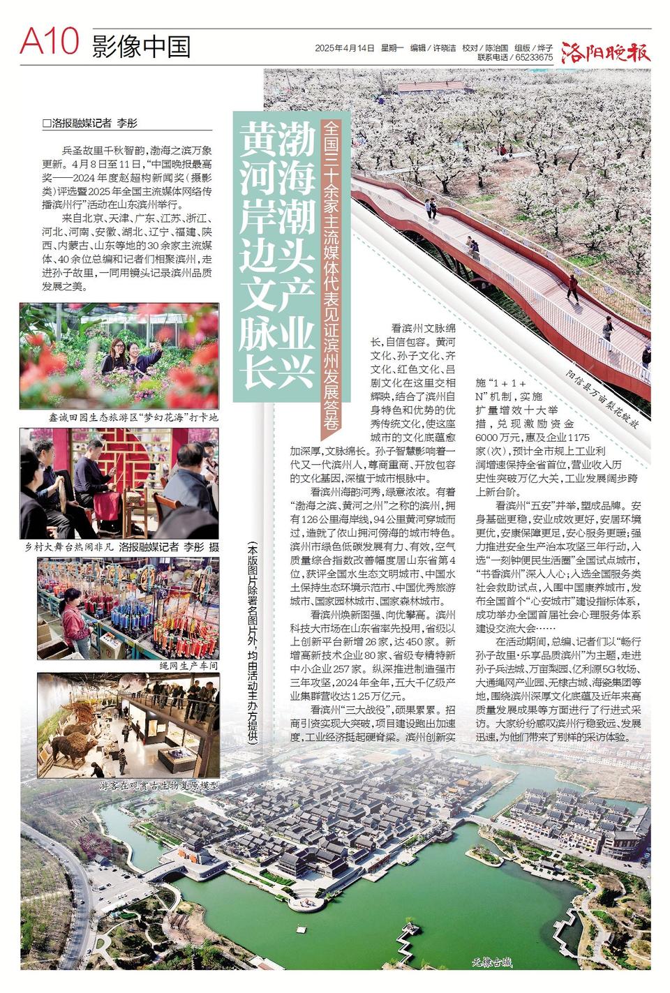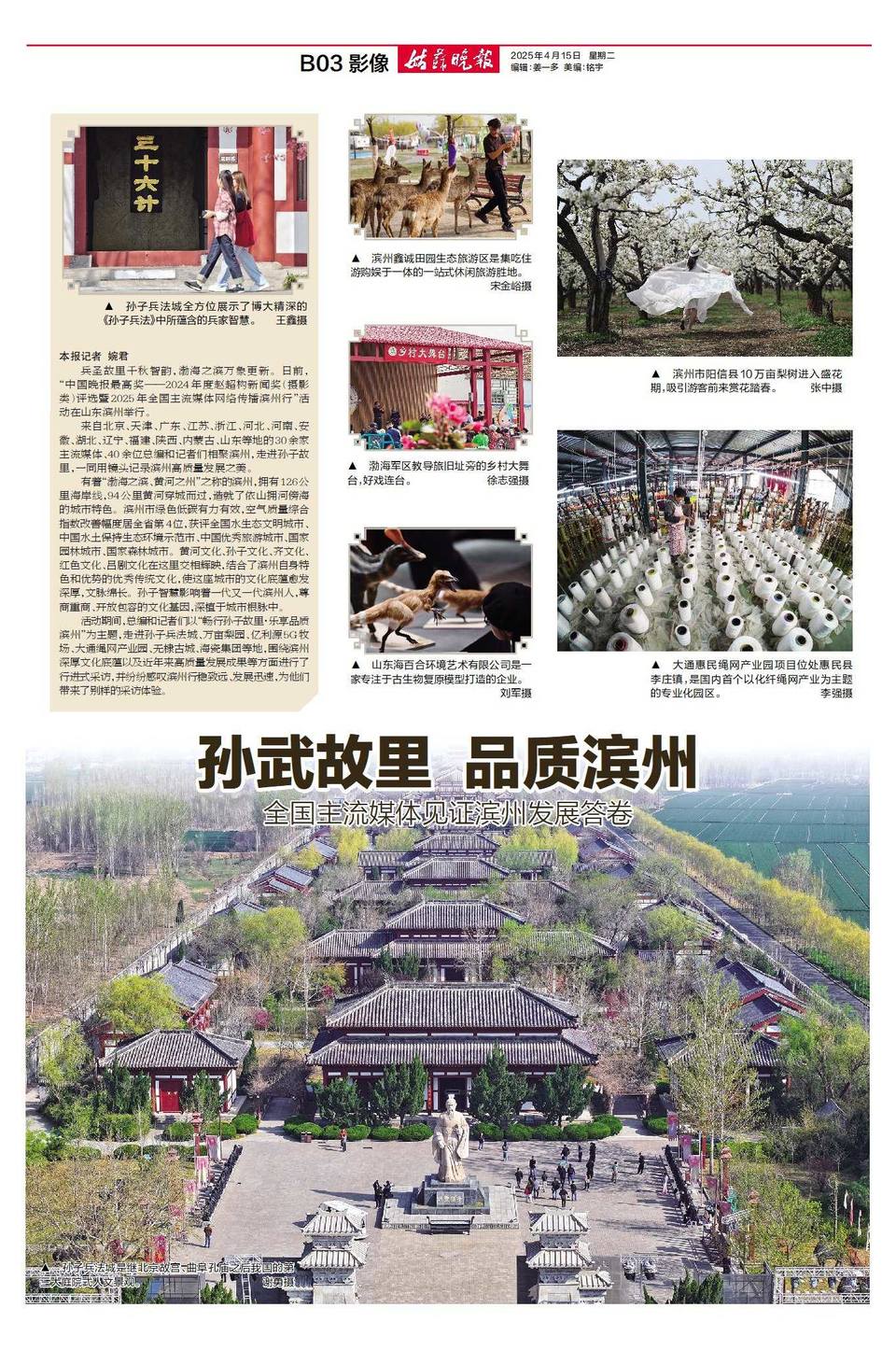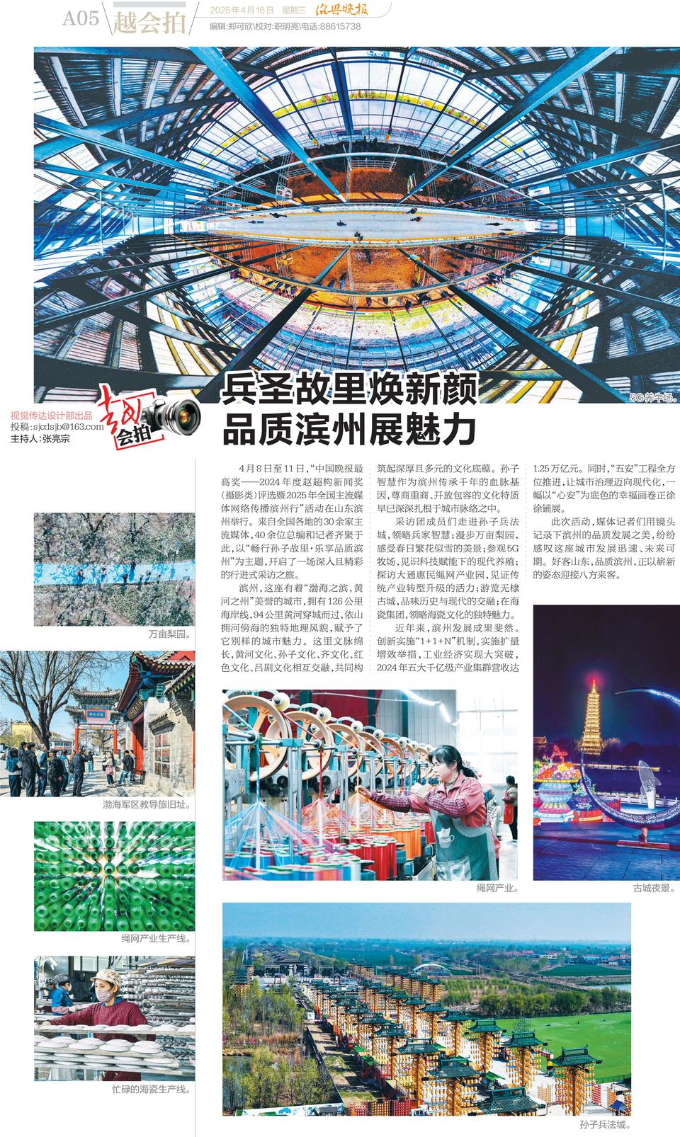 兵圣故里千秋智韵,渤海之滨万象更新。4月8日至11日,“中国晚报最高奖——2024年度赵超构新闻奖(摄影类)评选暨2025年全国主流媒体网络传播滨州行”活动在山东滨州举行。来自全国各地30余家主流媒体、40余位总编和记者们,齐聚滨州,一同用镜头记录滨州品质发展之美。
