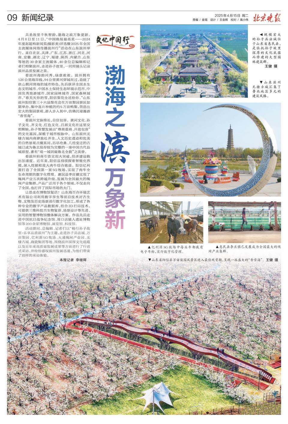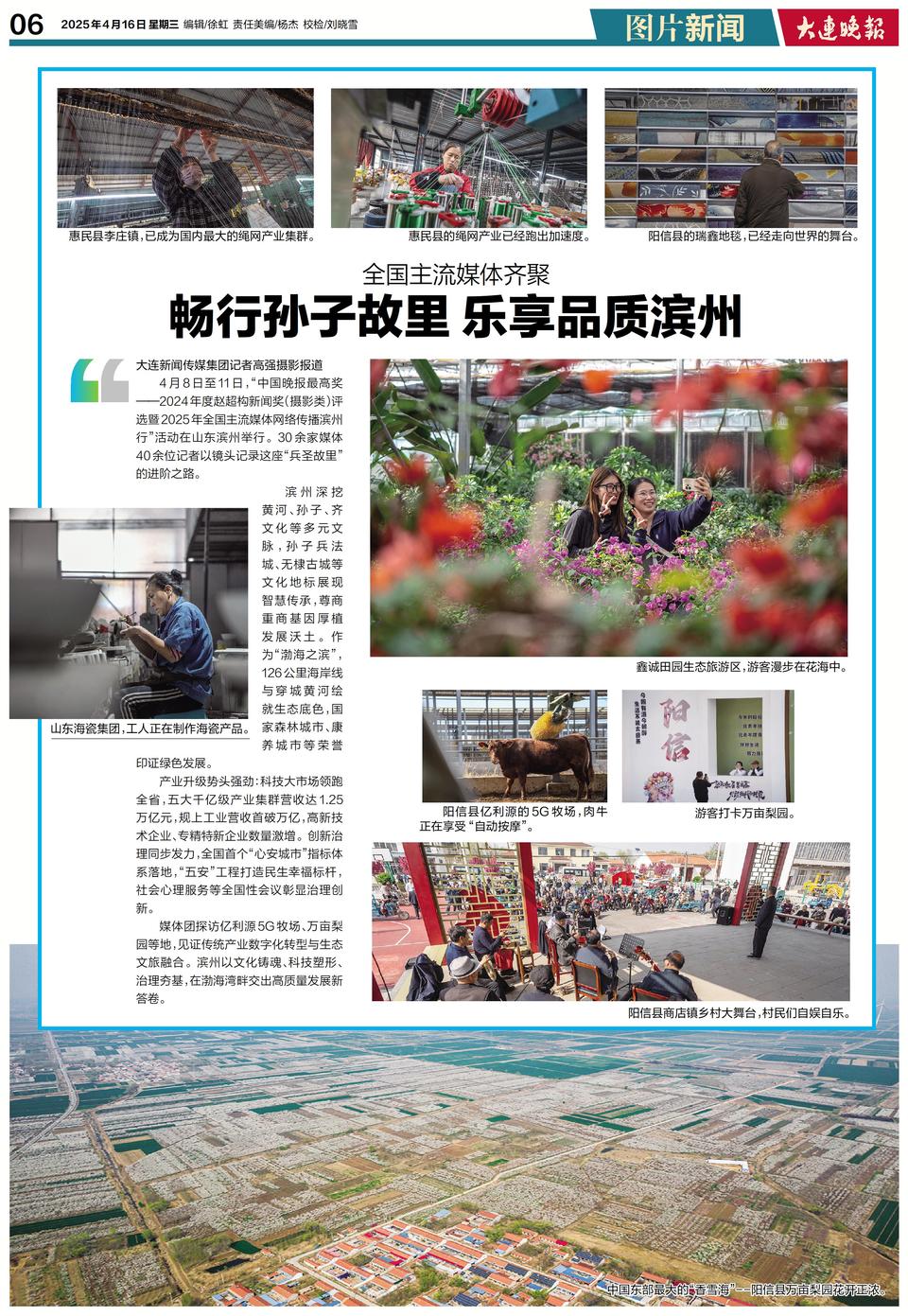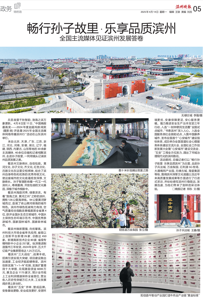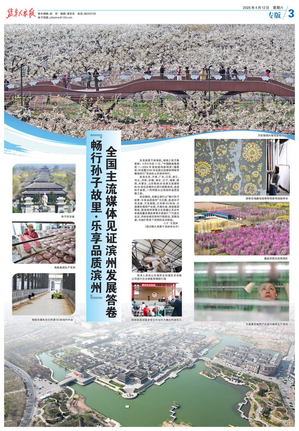 兵圣故里千秋智韵,渤海之滨万象更新。4月8日至11日,“中国晚报最高奖——2024年度赵超构新闻奖(摄影类)评选暨2025年全国主流媒体网络传播滨州行”活动在山东滨州举行。来自全国各地30余家主流媒体、40余位总编和记者们,齐聚滨州,一同用镜头记录滨州品质发展之美。