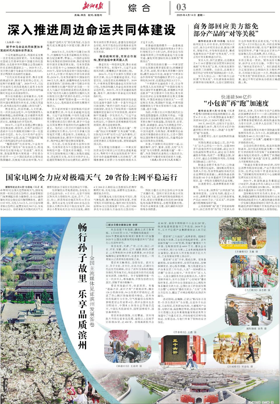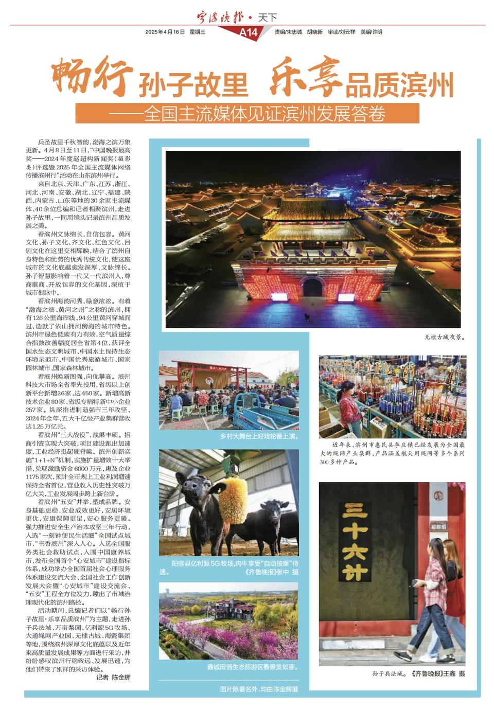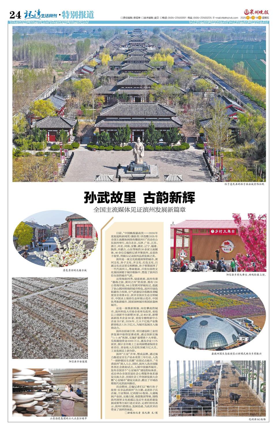 22家主流媒体持续整版推出《渤海之滨万象新》《兵圣故里 万象更新》《孙子故里 古韵新辉》《兵圣故里焕新颜 品质滨州展魅力》《黄河岸边文脉长 渤海潮头产业兴》《领略滨州之美》等专题专版,聚焦滨州生态环境、产业升级、文化赋能,版式新颖,内容丰富。
