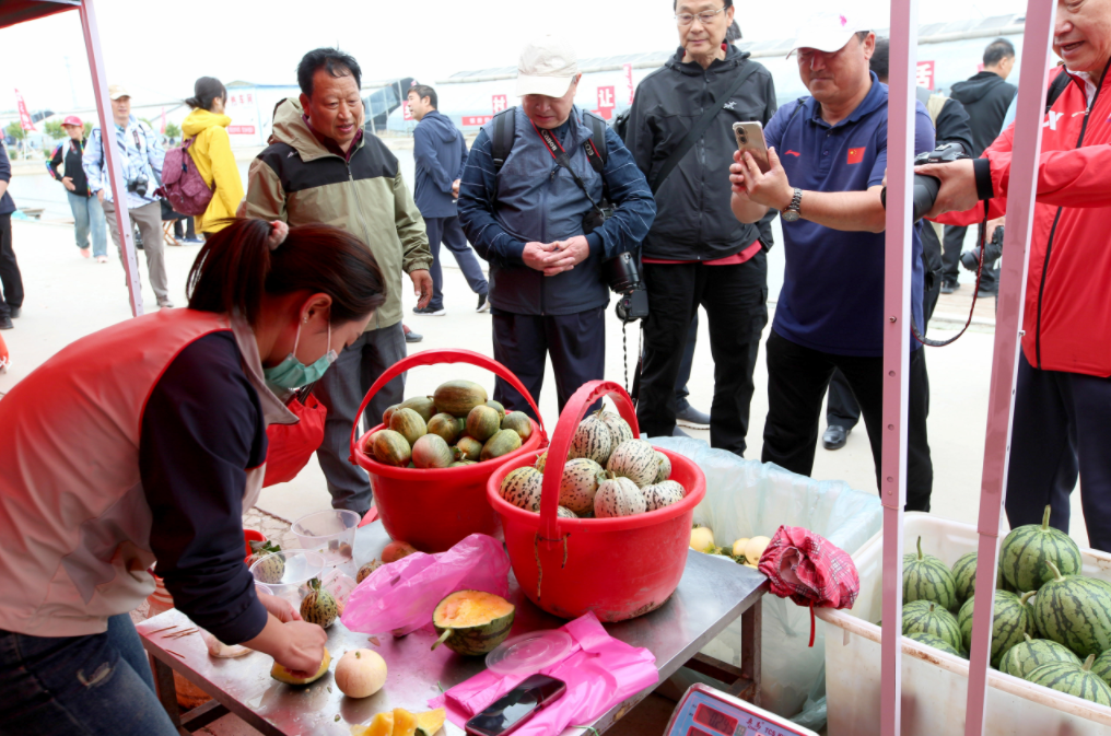 比赛现场还设有甜瓜、西瓜、西红柿等农产品的展示品尝和销售区。这些农产品均来自济宁惠生现代农业示范园的种苗,是农业产业化省级重点龙头企业——济宁惠生种苗有限公司与农科院合作引进的新品种。老钓手们在享受垂钓乐趣的同时,也品尝到了来自乡村的甜美果实,对乡村振兴有了更加直观、深刻的感受和认识。
