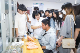 研学队伍先后来到该校中医系实训室、口腔系实训室、牙科医院、山东省“五运六气”研究传承推广基地、衡王府石牌坊、护理实训室、生命科学馆等场所,他们一边参观,一边体验了中医推拿、耳穴压豆、艾灸、应急救护、伤口处理等实训技能操作项目,还品尝了中医药膳、酸梅汤等特色产品。此次实训研学活动不仅是专业技能的学习与交流,也是对潍坊护理职业学院专业特色课程的深度体验,台湾师生对学校的实训设施、教学环境、教学方法赞誉有加。