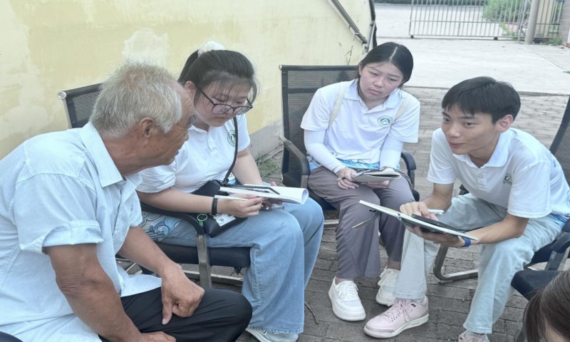 图为实践队员在示范园区对田敬义进行访谈场景。 徐晨瑗 摄