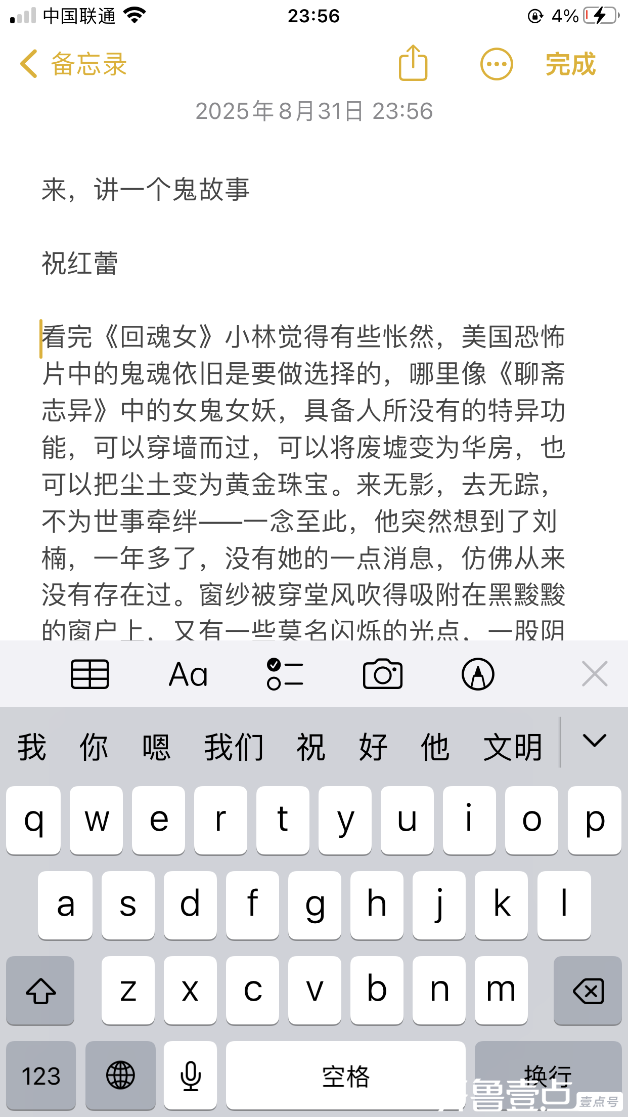 看完《回魂女》小林觉得有些怅然,美国恐怖片中的鬼魂依旧是要做选择的,哪里像《聊斋志异》中的女鬼女妖,具备人所没有的特异功能,可以穿墙而过,可以将废墟变为华房,也可以把尘土变为黄金珠宝。来无影,去无踪,不为世事牵绊——一念至此,他突然想到了刘楠,一年多了,没有她的一点消息,仿佛从来没有存在过。窗纱被穿堂风吹得吸附在黑黢黢的窗户上,又有一些莫名闪烁的光点,一股阴森的凉气从他脚底板升起来,他不知道所处何方,也不知道自己是人是鬼。