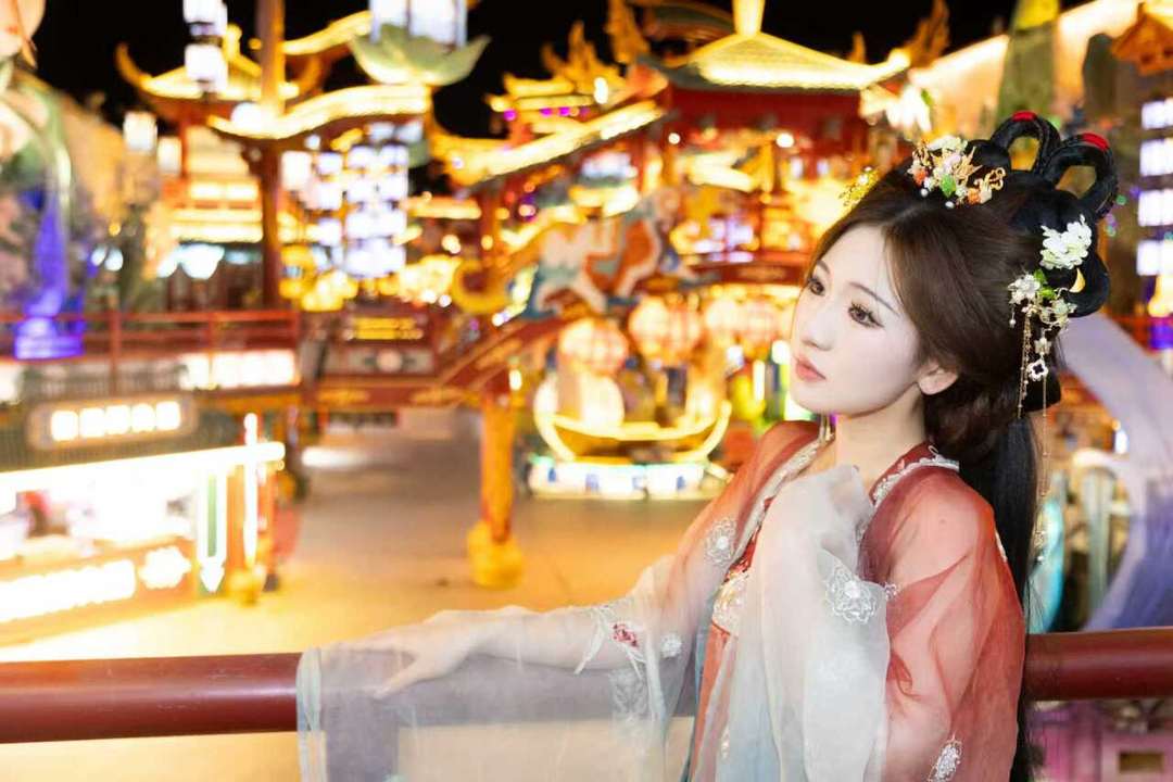 “旅拍的风”也吹到了韩国。在逛明月山海间不夜城之余,从化妆到发型再到服装来一套汉服妆造,体验古风旅拍,正在走红韩国网络。