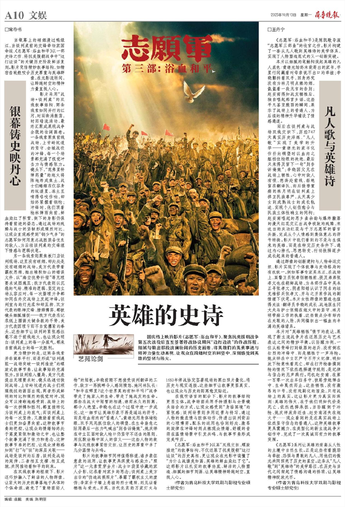 《志愿军》系列让英雄的崇高从人性的土壤中自然生长。正是这些有着脆弱与牵挂、恐惧与勇敢的凡人,用他们的微光共同照亮了历史的星空。这条从“凡人歌”到“英雄诗”的美学路径,在历史与当代之间架起了情感沟通的桥梁,让英雄精神绽放光芒。