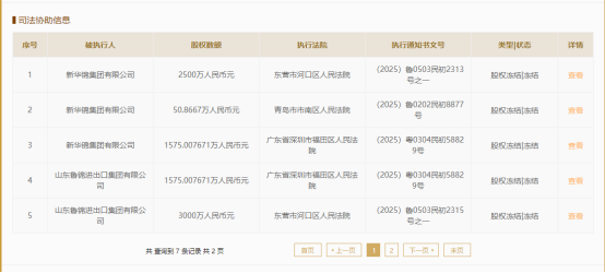 根据执行信息,即墨黄酒大股东山东鲁锦进出口集团有限公司与新华锦集团有限公司列入被执行人(这两家集团共同持有即墨黄酒厂100%股权,持股比例分别约为54.55%和45.45%。),山东省即墨黄酒厂有限公司被冻结标的1575.007671万元股权。执行通知书文号为(2025)粤0304民初58829号,由广东省深圳市福田区人民法院执行。