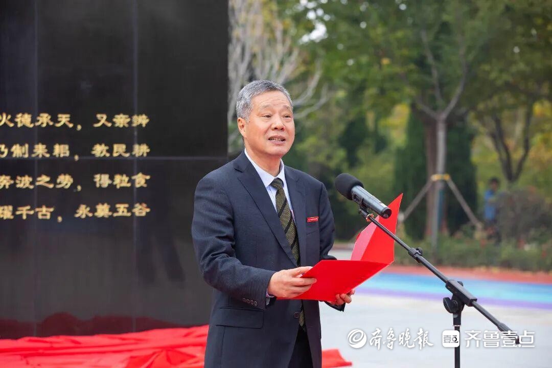校友代表吕学彬发言。他表示济南校友会始终心系母校、鼎力支持,这座雕像正是校友与母校血脉相连、共筑粮安的生动见证。