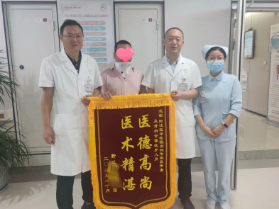 术后,医院针对患者情况制定了个性化康复方案,予以布洛芬止痛、贝米肝素钠抗凝、气压预防下肢血栓,同时结合可见光治疗、耳穴压丸等特色疗法,助力患者恢复。经过十余天的精心治疗与护理,周先生病情明显好转,颈肩部疼痛大幅缓解,活动能力逐步恢复。在达到出院标准后,周先生顺利办理了出院手续。为向医护人员表达由衷感激,他特意定制了一面锦旗赠予黔江区中医院骨伤科,锦旗上 “医德高尚 医术精湛” 八个字,不仅是对科室医疗技术的高度认可,更饱含着对医护人员悉心照料的诚挚谢意。