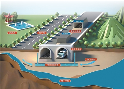 泉城公园站地处趵突泉正南方,若按常规地铁站的深度建设,将直接穿越含水层,扰动地下水系。