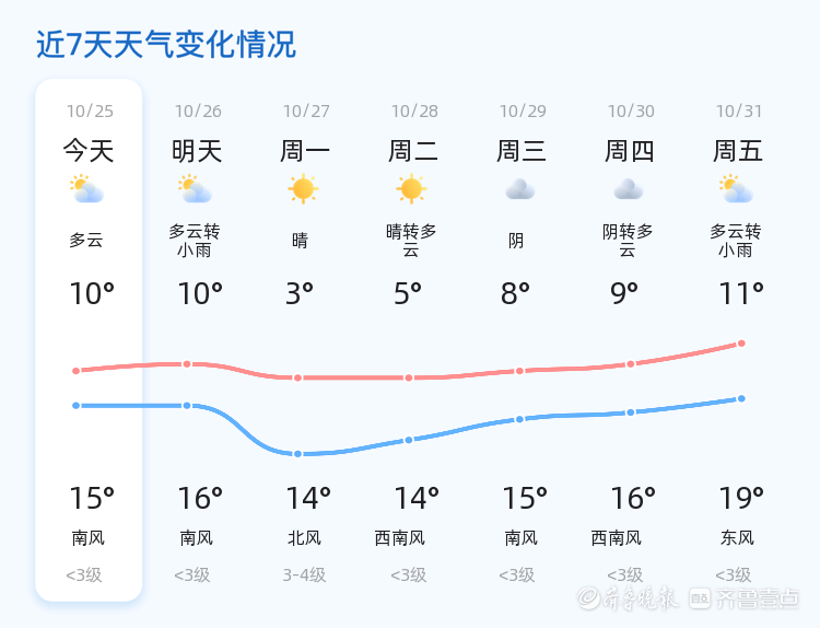 明天10月26日,东营市天气将由多云转为小雨,气温略有上升,预计最高气温16℃,最低气温10℃,风力仍为南风,小于3级。与今日相比,明日降雨的可能性增加,市民需注意携带雨具,出行时请注意交通安全。