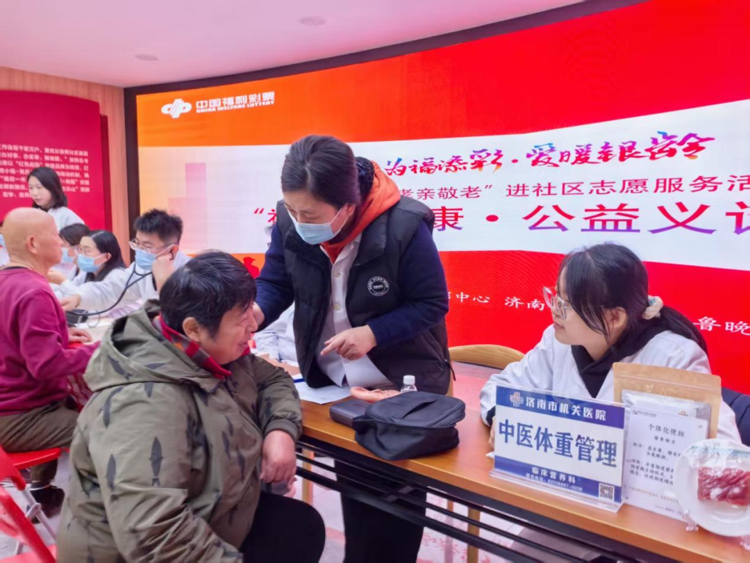 10月24日上午,由山东省民政厅、山东省福彩中心、济南市民政局与齐鲁晚报·齐鲁壹点联合主办的“福”伴安康·公益义诊进社区活动在杆石桥街道乐山小区社区党群活动中心举行。