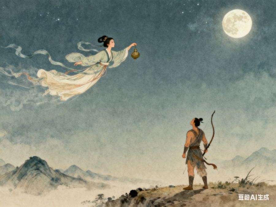 我们无法确知嫦娥奔月更早的起源,很可能和后羿射日一样,是战国时期形成和流行的神话。神话是不讲理的,我小时候,听到这两个故事就心生疑惑,后羿何许人也?那是射日的大英雄,夫人窃药出走登了月,他暴跳如雷气得发疯,难道不能张弓搭箭把月亮射下来吗?这有什么难的?不比射日更难吧?
