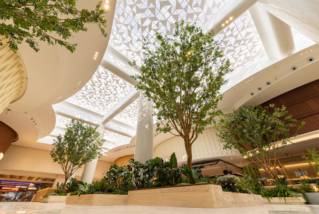 作为济南首个POD商业,西城天街在空间设计上打破传统商业 “封闭盒子” 形态 ,通过将外部公园景观与内部消费场景深度融合,让“在公园里逛街” 从概念变为现实。跨 4-5 层的 “光所市集”,通过大面积透光穹顶与超高挑空设计,营造出兼具交互感、呼吸感与沉浸感的室内花园街区;同时在核心区域规划休闲餐饮集群。