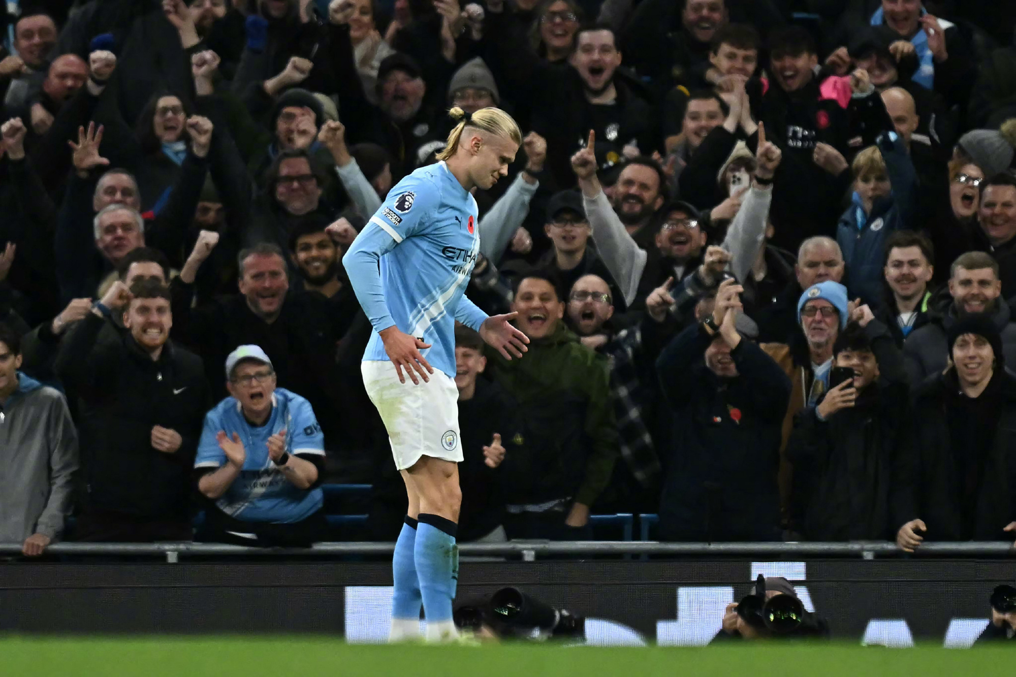 哈兰德在第17分钟和第33分钟各入一球,赛季累计进球数达到13球。哈兰德本赛季5次单场至少打进2球,超越凯恩独居五大联赛第一。才11月初,哈兰德本赛季已为俱乐部和国家队共打入26粒进球。