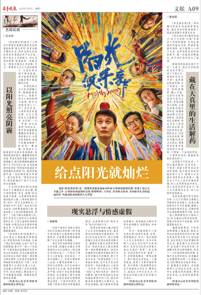 在国产温情片持续以现实关怀打动观众的时候,《阳光俱乐部》却展示出脱离现实的情感状态,以虚假的情感堆叠消解了对生活真实的感触。