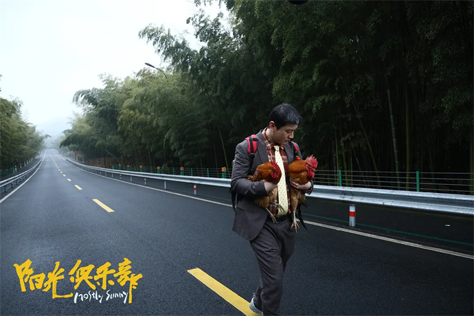 随着故事推进,夕阳的金辉慢慢占满画面,映射出命运的流转和时间的无情。绿色是我们每天努力生活的温柔,金色是我们无法掌握的现实生活;绿色属于生命的萌芽,金色属于命运的归宿。导演魏书钧用这两种颜色,讲述了一个朴素却深刻的命题:幸福不是永恒的状态,而是藏在生活缝隙里的那一点温暖光亮。我们都是阳光俱乐部的一员,就像影片的最后,吴优抱着两只公鸡边走边唱,这是对生活最坦然的接纳。哪怕没有奇迹,生活依然值得被热爱。