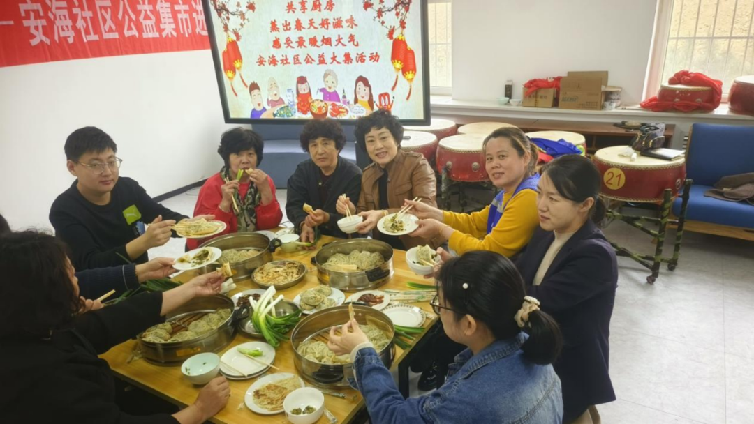 大家围坐圆桌,分享美食、畅谈家常,食堂内暖意融融。这桌充满烟火气的邻里宴,以简单美味串联起邻里温情,尽显社区生活的美好。