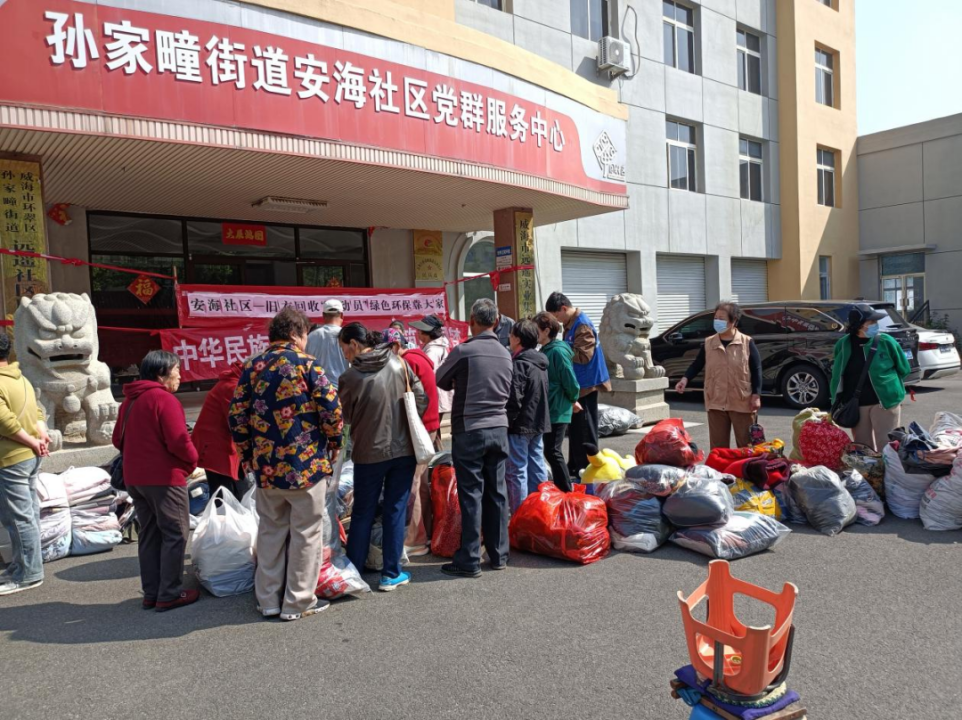 活动当天,广场变身充满暖意的“绿色能量站”,旧衣回收点前排起长龙,居民们拎着编织袋、推着小推车,将闲置的衣物、被褥、鞋帽等源源不断送至回收点。