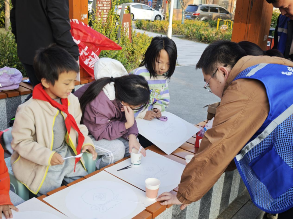 活动现场,孩子们变身“小小气候守护者”,挑选谷物、以环保胶水为“画笔”,在画板上拼贴创作。红色米粒拼成吉祥福袋,金黄米粒铺就饱满“福”字,一幅幅充满秋意与生机的谷物画,承载着孩子们对丰收的喜悦和对绿色地球的美好向往。