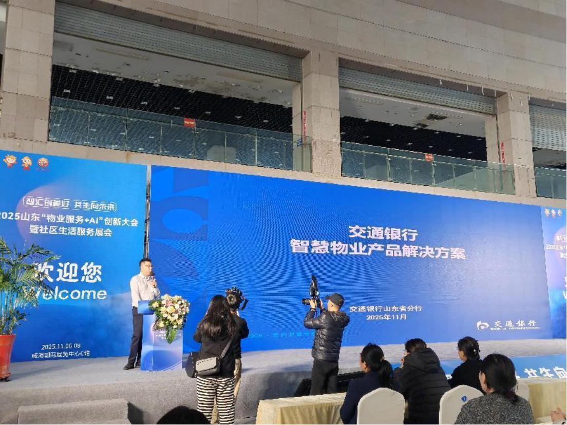 11月6日,2025年山东“物业服务+AI”创新大会暨社区生活服务展在威海国际展览中心盛大开幕。这场全国首次聚焦“物业管理+生活服务”的标杆性盛会,汇聚了政府、协会、头部物企及科技公司。在众多前沿科技展示中,交通银行威海分行带来的“智慧金服平台–智慧物业”解决方案,因其以金融科技深度赋能社区生态,成为全场关注的焦点。